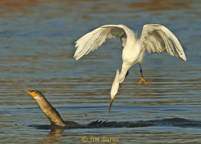 March 5—Near a pond at my local patch I watched as a Snowy Egret made an aerial attack on a Double-crested Cormorant swimming in the water with a fish in its mouth, something I had never witnessed before. Egret-1, cormorant-0.