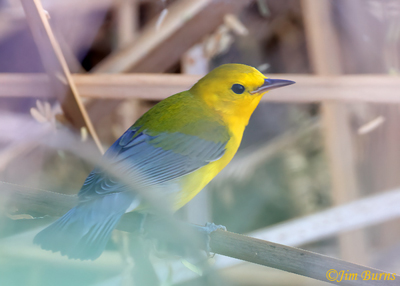 Adrenaline pumping, I fortuitously raised the camera first, not the binoculars. What I saw, partially occluded of course in the tangle of mesquite branches and vegetation, was a hitherto unreported male Prothonotary Warbler, not an unexpected fall migrant through the desert, but certainly far less common than three of the four vagrants I had unsuccessfully chased all week.