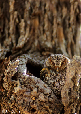 The best of the nineteen in North America, for me, are the tiny FLAMMULATEDS. Though they are said to be the most numerous summertime raptor in our Western forests, good luck finding one. Dark eyes and reddish tints in their plumage encrypt them amidst the interstices of Ponderosa bark, and their soft calls are ventriloquial. The image accompanying this column is one of my top ten bird portraits, taken as we fervently prayed whatever was splashing down the creek toward us was not a bear.