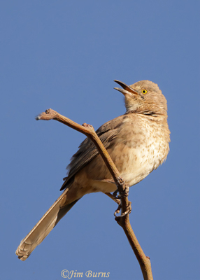 The punchline for this story is that at the time I had very few good photos of Bendire’s Thrasher and, later, I also saw Curve-billeds in the same park. Returning the following week, camera ready, I heard and immediately recognized a Bendire’s singing as I got out of my car. I tracked it down and finally shot some good images of this species, a much less common bird than Curve-billed.