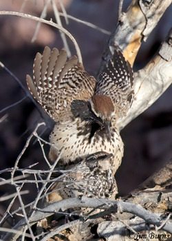 I finally became fully convinced I had found a breeding nest only when I documented both of the pair coming to it at the same time, and then shots of them actually copulating corroborated this. Several times the second one would greet the other, working inside the nest, with a full tail spread and much vocalizing that sounded like harsh purring. The literature tells us this is a standard communication practice between mated pairs, something I had never witnessed before.