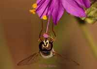 Flower Fly (Chrysotoxum species) on Showy Four O'Clock White Mountains, Arizona--2052 |