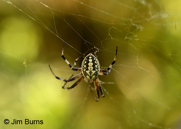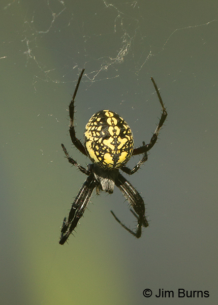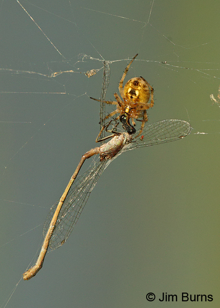 Marbled Orbweaver female, ventral view, with Rambur's Forktail, Texas